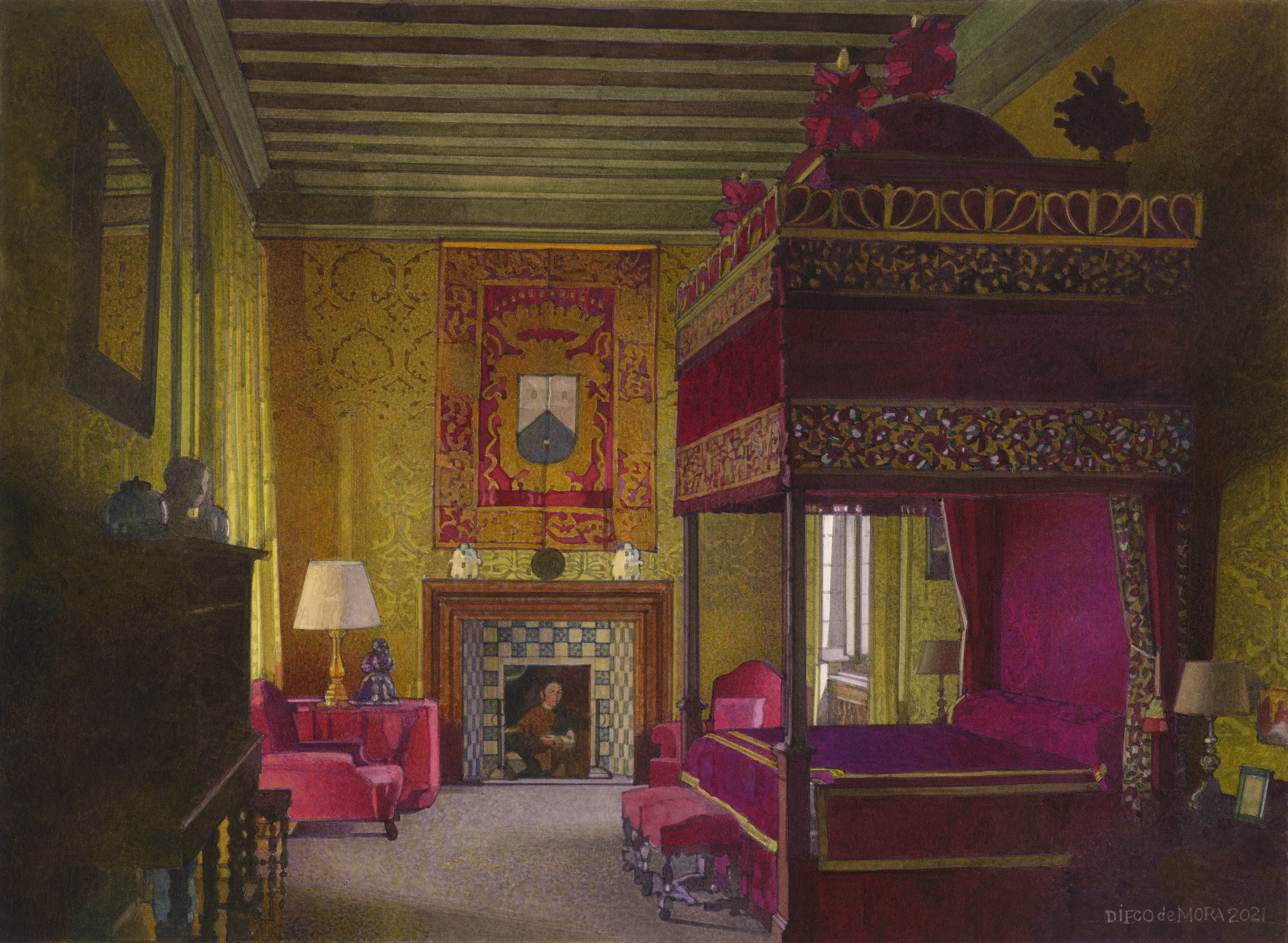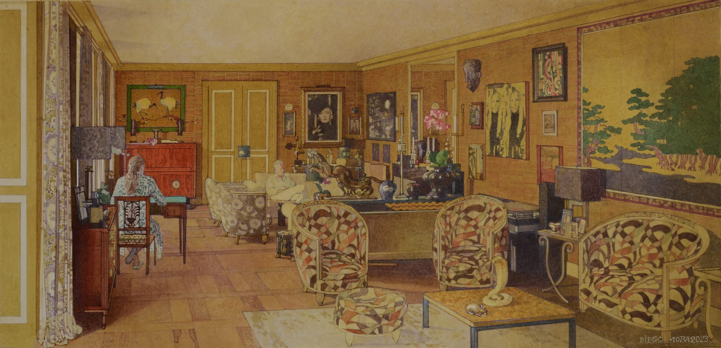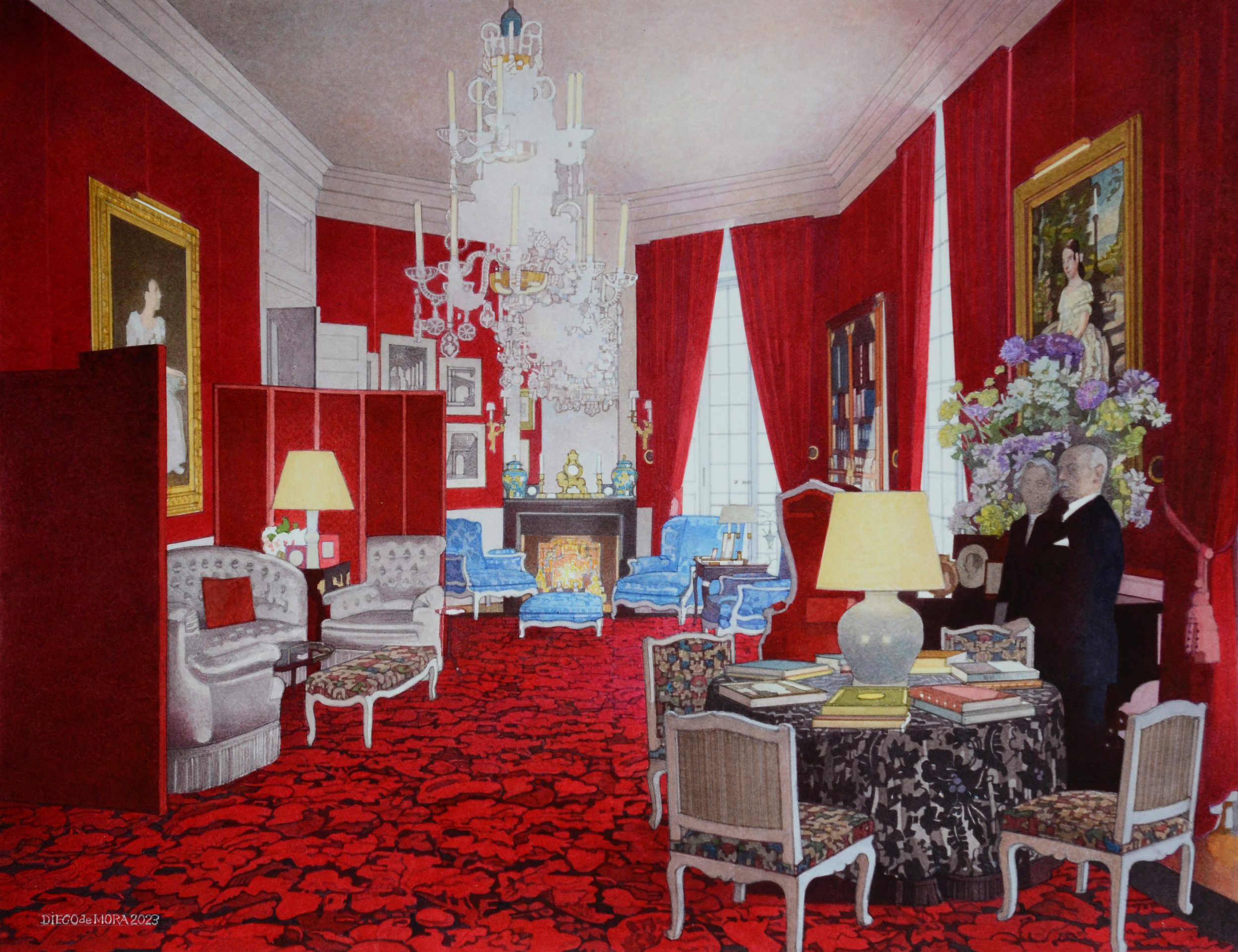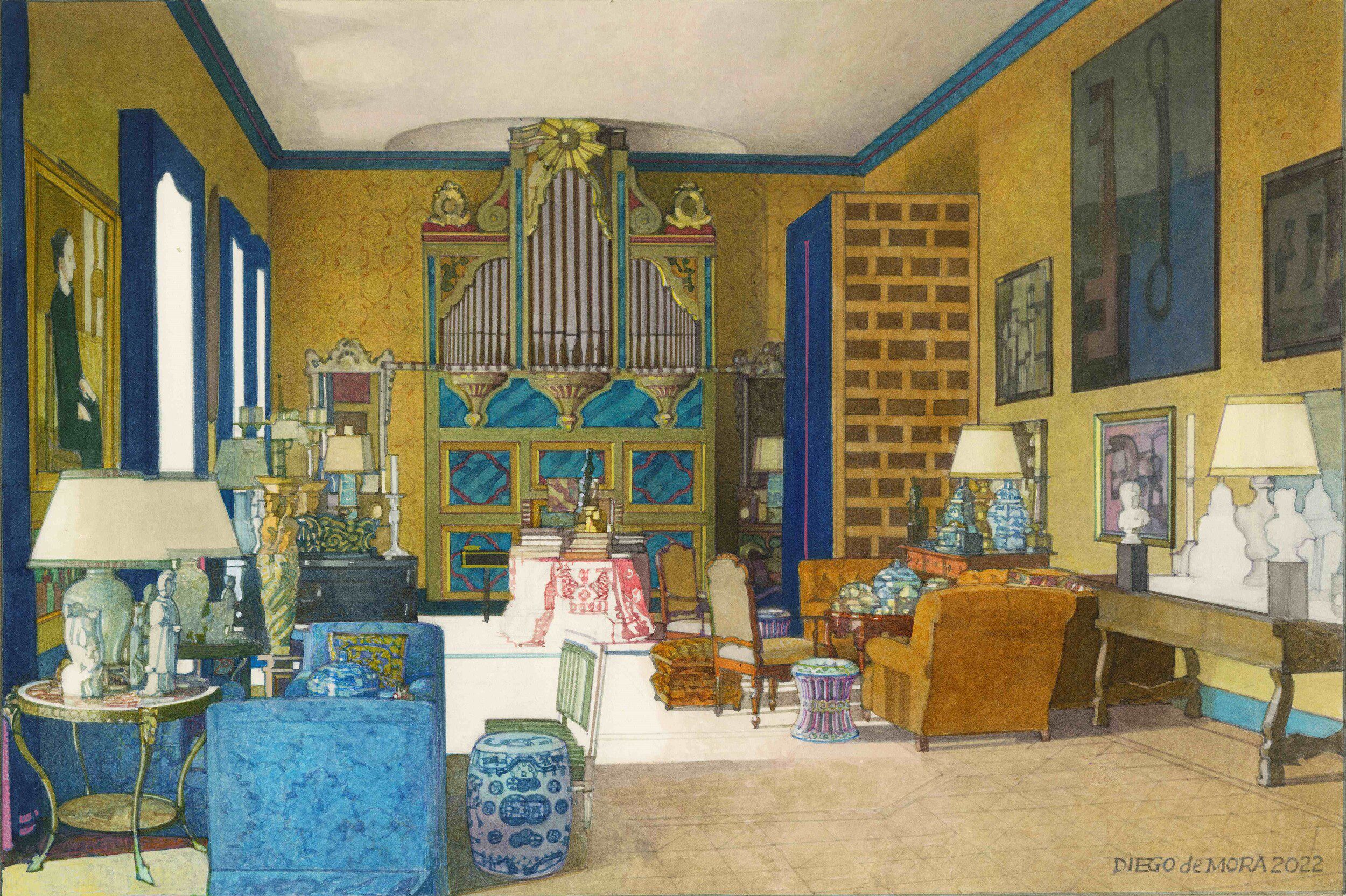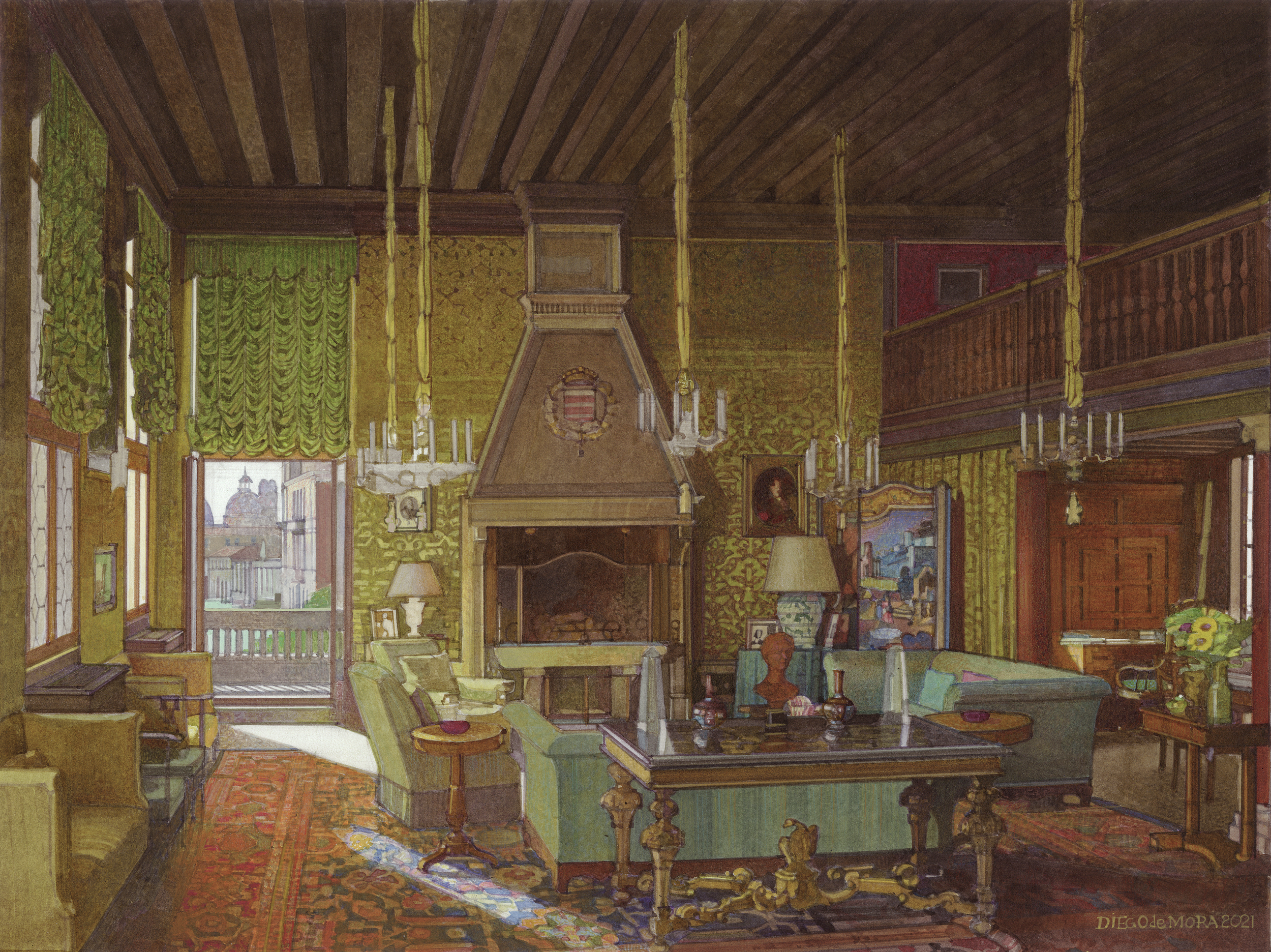 We are pleased to present this exhibition for many very good reasons. Firstly, because we admire Diego de Mora’s work and we want to share it with you. His interiors are the testimony of a pictorial reality that is almost forgotten and barely practiced. A heritage that he handles with mastery and modernity. Secondly, because it allows us, once again, to celebrate drawing. In its thirty-five years of history, Caylus has dedicated quite a few exhibitions to its dissemination and knowledge: some as significant as From Fortuny to Saura (1989), Drawing in Spain (1992), The Role of Drawing in Spain (2006) or the sale of the Alcubierre Album in 2005, the most important historical collection of Andalusian drawings compiled in the 18th century.